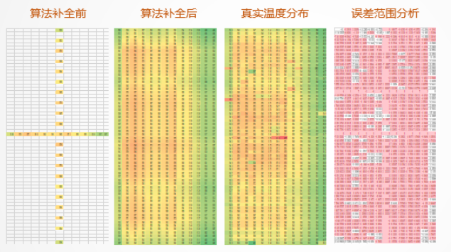 上圖是某電廠的實際熱力圖,如圖所示,算法通過對該電廠鍋爐進行了數據驗證,整體誤差在10℃以內,足以滿足的運行調整的日常參考需求。通過算法設計,系統可實現基于有限測點的壁溫熱力圖的數據補全功能。補全后,界面更加美觀,同時更便于運行人員進行受熱面熱偏差的直觀分析。