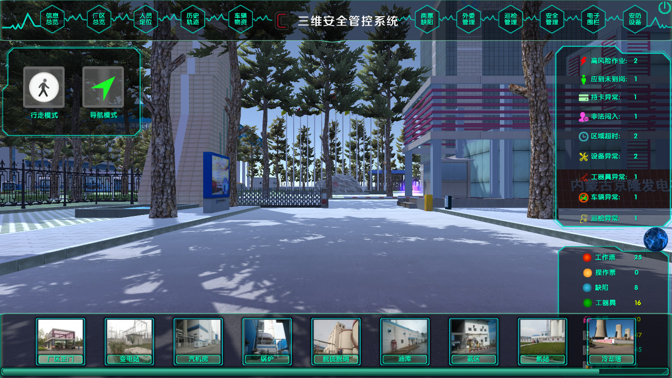 在形形色色的人員定位解決方案中,關鍵的永遠是強調兩點:安全與管理。然卻去除這兩個形而上的理由,還有一些更通俗易懂的原因:1、建設智能化、數字化、人性化、安全化的智慧拓展基地現實需求;企業要想高大上的“智慧”,就需要一些高大上且實用的技術,人員定位技術憑借接地氣、通俗易懂的優點完美適應這個需求。2、提升管理水平、拓展企業安防級別,改善企業形象。提高對員工管理的響應速度,可通過對保安、外來人員的定位和越界報警,提供更優質的服務;3、通過安保監控終端可以對員工行走軌跡、員工越界、突發事件等進行應急指揮。云酷科技作為電力行業內一家進行各種定位主流技術融合的公司,針對電廠定位需求,采用UWB精準定位、激勵器存在性檢測定位、車輛采用GPS定位技術,運用業內領先的TOA算法,同時結合定位大數據分析,解決了傳統定位模式抗干擾能力差、定位準確度低、安裝布線困難、成本費用高等問題;針對不同區域提供不同定位解決方式,達到定位精準度適宜,投入性價比高的建設目標。同時考慮到不同電廠的業務需求不同,系統擁有兩票管理、缺陷/隱患管理、到崗到位管理、外委管理、工器具管理、車輛管理、手機APP等多種功能模塊。支持電子圍欄、人臉識別、視頻監控聯動、智能門禁聯查、各類報警預警等功能。電廠職工攜帶信息定位標簽,該電子標簽唯一。通過電子標簽和定位設備之間不斷測距,實時定位并顯示在二維/三維地圖上,當人員遇到突發情況時,可以通過電子標簽進行報警。同時根據標簽的唯一性,在系統中輸入人員信息就可以查詢當前位置,還可以查詢到人員一定時間內的歷史活動軌跡。在此基礎之上系統會自動統計各外包隊伍出勤率,及人員出勤天數供管理人員查看。三維可視化人員定位系統把整個廠區劃分為N個作業區域,根據作業區域安全風險的高低做出相應的等級劃分,便于重點區域重點監控。根據各人員的工作崗位和工作內容進行區域授權,對人員闖入未授權區域系統立即報警。同時系統會接入ERP中的兩票、缺陷信息,根據兩票、缺陷信息中的區域位置及設備的KKS編碼,把兩票、缺陷作業劃分到相應的區域中,實現兩票、缺陷及作業人員分區域列表展現和三維展現,方便查看與管理。進出廠區的運送固廢車輛,危化品車輛、外來車輛、重型機械等安裝GPS定位。在系統中為車輛預設固定路線,并通過GPS進行追蹤,實現各類車輛的實時位置監督、跟蹤其行駛軌跡,一旦發現偏離預設路線立即報警并推送相關管理人員。重要工器具安裝定位標簽,實現工器具的實時定位。人員攜帶工器具進入現場,系統根據工器具檢查周期可提供到檢預警提醒。當人員攜帶未按時檢查維修的工器具到現場作業,進入作業區域時,系統報警,提示過檢工器具詳細情況,并通知相關管理人員。定位系統自動記錄巡點檢人員的巡點檢時長、巡點檢次數并與預設的巡點檢路線進行比對,自動統計分析巡點檢人員的到位率與偏差等。對于巡點檢人員偏離巡點檢路線及漏檢等及時短信與APP推送報警信息。密閉空間作業屬于高風險作業,安全風險較高。針對密閉空間作業的環境特點,采用電池供電的移動式定位設備臨時固定在密閉空間內,天線放置在密閉空間外,確保定位無線信號傳輸的可靠性。人員攜帶定位標簽進入密閉空間系統可實時監督密閉空間內人員數量。同時可加設便攜式無線攝像頭,以便實時監控作業人員。高空作業、大型設備吊裝及腳手架搭設過程中容易出現安全事故,如未掛安全帶墜落,交叉作業、高空落物等風險,這類亦屬于高風險作業。在作業前假設臨時虛擬電子圍欄,防止無關人員進入工作區,同時利用圖形識別技術檢測是否正確佩戴安全帽和安全帶,發現異常立即報警。系統支持接入電廠視頻監控系統,在二維/三維電子地圖上顯示視頻監控位置,任意切換調取視頻監控。可實現快速查找、單點回放、圖像識別等功能。同時可基于人員當前位置自動調取對應的視頻監控,對人員行走到其他位置自動切換到相應監控畫面。對于發生異常的情況,可基于人員歷史軌跡不同位置及不同時段調取相應位置相應時間段的歷史視頻監控,與歷史軌跡聯動播放,方便事故分析及責任劃定。門禁系統是電廠重要的安防屏障,在電廠重要位置都裝有門禁設備,本系統接入現有門禁系統,通過動態授權實現門禁的智能聯防。智能門禁聯防實時顯示各個門禁的開關及工作狀態,還可以查詢門禁刷卡記錄,并根據進入記錄統計各區域內人員數量及名單。